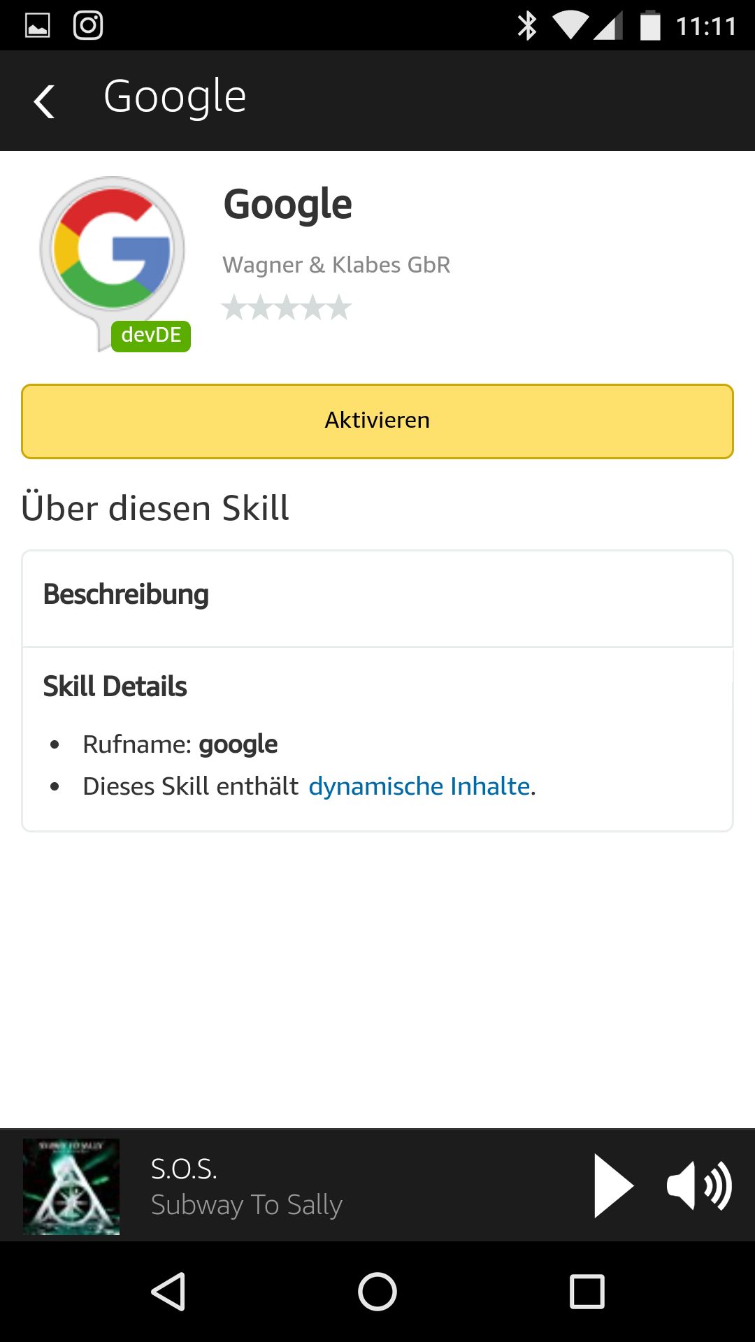 Jetzt brauchen wir nur noch in unsere Alexa App gehen und dort unter „Skills > Ihre Skills“ unseren neuen Skill „devDE“ aktivieren.